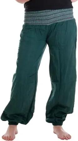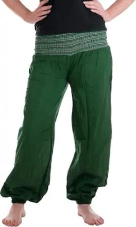 Alternative Bekleidung - Sommer Chino Haremshose aus Baumwolle mit super elastischem Bund - handgewebt dunkelgrün