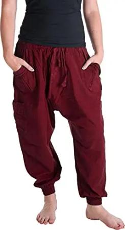Alternative Bekleidung - Sommer Haremshose mit Taschen aus Baumwolle mit elastischem Bund - handgewebt dunkelrot