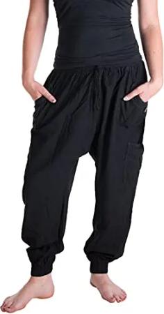 Alternative Bekleidung - Sommer Haremshose mit Taschen aus Baumwolle mit elastischem Bund - handgewebt schwarz