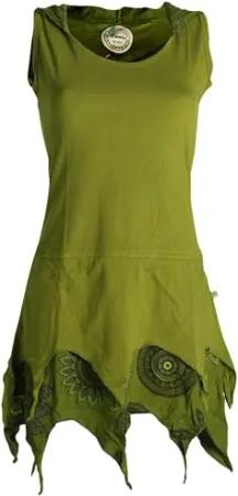 Damen Elfentunika im Lagenlook mit Zipfeln I Größe 40 I Handgefertigte Tunika aus 100% Baumwolle I Bequem & modisch für Alltag & Freizeit I Nachhaltige Alternative Bekleidung I Olivegrün