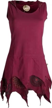 Damen Elfentunika im Lagenlook mit Zipfeln I Größe 44 I Handgefertigte Tunika aus 100% Baumwolle I Bequem & modisch für Alltag & Freizeit I Nachhaltige Alternative Bekleidung I dunkelrot