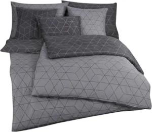 Mako-Satin Bettwäsche Geo grau 155x220 cm + 80x80 cm