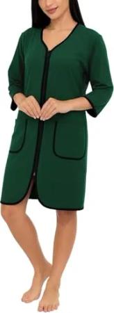 Damen Bademantel Morgenmantel mit Reißverschluss Hausmantel Leicht 3/4 Ärmel, Farbe: Dunkelgrün, Größe: L