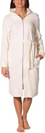 Damen Bademantel Morgenmantel mit Reißverschluss Lang, Farbe: Ecru, Größe: XXL