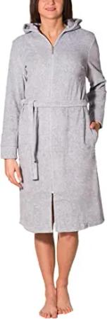 Damen Bademantel Morgenmantel mit Reißverschluss Lang, Farbe: Melange/Grau, Größe: XXL