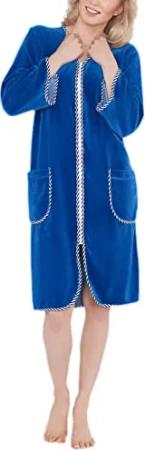 Damen Velours Bademantel Morgenmantel Kurz mit Reißverschluss, Farbe: Jeans, Größe: L