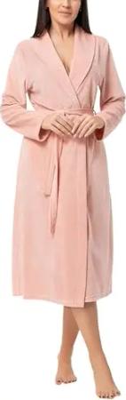 Damen Velours Bademantel Nicki Morgenmantel mit Schalkragen zum Binden, Farbe: Aprikose, Größe: L