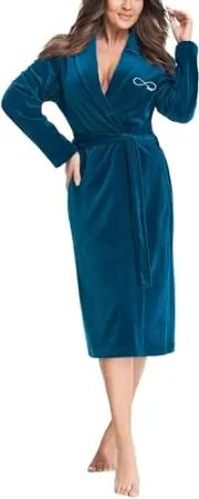 Damen Velours Bademantel Nicki Morgenmantel mit Schalkragen zum Binden, Farbe: Meeresgrün, Größe: XXL
