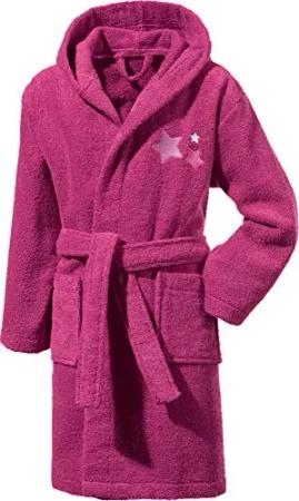 Kinder-Bademantel mit Kapuze Frottier Beere Größe 86/92 - weich, hautfreundlich, atmungsaktiv, Stickerei Sterne (weitere Größen)