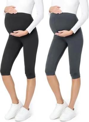 3/4 Umstandsleggings Kurz aus Baumwolle Bequeme und blickdichte Schwangerschaftsleggings 2Pack Umstandsmode BE20-229 (2Pack Schwarz/Graphite, XL)