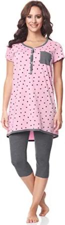 Damen Kurzarm Pyjama mit Stillfunktion BE20-177, Rosa-Punkten-Grau, S(Rosa-Punkten-Grau, S)