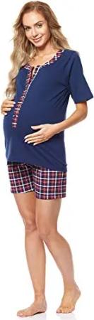 Damen Kurzarm Pyjama mit Stillfunktion BE20-177, Blau-Punkten-Marine, S(Blau-Punkten-Marine, S)