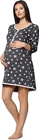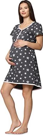 Damen Umstands Nachthemd mit Stillfunktion BE20-176 (GraphieSterneBlau, M)