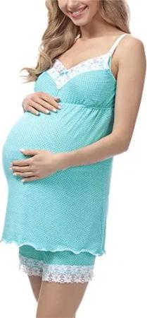 Damen Umstands Pyjama mit Stillfunktion BE20-143 (Türkis, S)