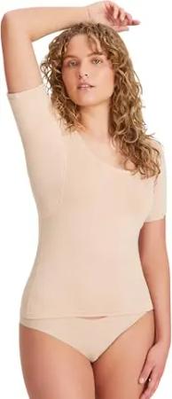 Anti-Schweiß Shirt Damen mit integrierten Achselpads gegen Starkes Schwitzen - Anti-Schweiß Unterhemd mit garantiertem Schutz vor Schweißflecken und Schweißgeruch Hautfarbe Nude XS