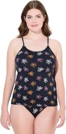 Damen große Größen Übergrößen Plus Size Hemd, Blüten, Rundhals, Spaghettiträger, Biobaumwolle Marine 46+ 837224130-46+