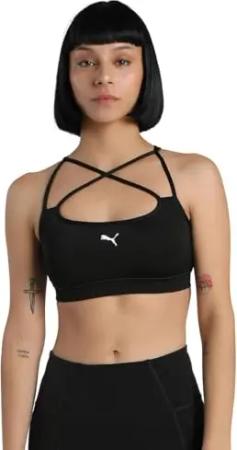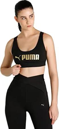 Damen Mid Impact Fit BH Unterwäsche Top, Schwarz-Metallic. Puma, XS