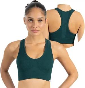 Sport BH Damen Amaze Pro - Blickdicht rutschfest Sport Bra - Seamless Gerippter Stoff Crop Top - Atmungsaktive Yoga Tank Top für Fitness & Gym, Größe:XS, Color:Dunkelgrün
