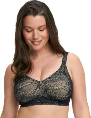Damen BH ohne Bügel I Print 8235 I Größen B-G I Bügelloser BH mit 3-geteilten Cups & floralem Dessin I Verstellbare Träger & Rückenverschluss I Angenehmer Komfort-BH