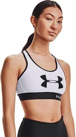 Armour Mid Keyhole Graphic, komfortable Funktionsunterwäsche, Sport BH mit Racerback Design und Kompressions Passform Damen, Weiß (White / White / Black) , XS