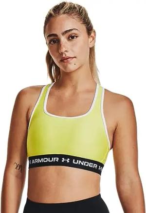 Damen Armourâ Mid Crossback Sports BH T-Shirt, gelb, L