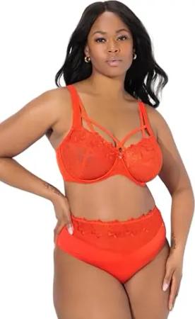 TruYou Damen große Größen Übergrößen Plus Size TruYou Bügel-BH, transparente Spitze orangerot 105G 832800525-105G
