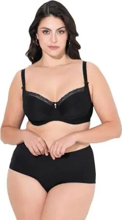 TruYou Damen große Größen Übergrößen Plus Size TruYou Bügel-BH, Softschalen, Spitze, High Cut schwarz 110E 835692100-110E