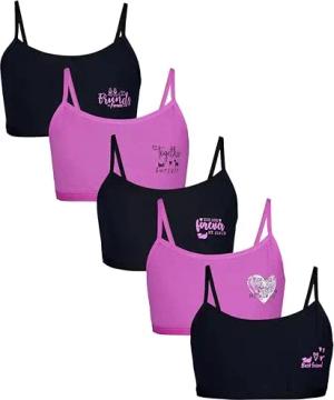 Mädchen Bustier mit Spaghettiträger 5er Pack, Farbe: Forever Friends Schwarz Rosa, Größe: 140-146