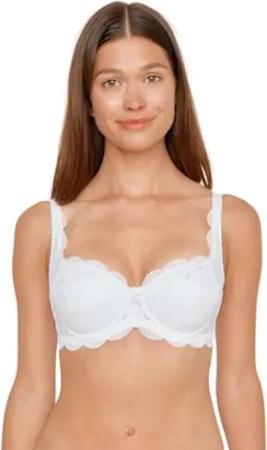 Dirndl BH Damen mit Bügel Wiesn-Zauber I Push-Up BH mit vorgeformtem Schalen-Cup I Entnehmbare Push-Ups I Damen-BHS für EIN besonderes Dekolleté I weiß I 85C