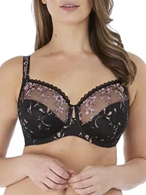 Damen Adelle Underwire Side Support Bra BH mit voller Abdeckung, Durchsichtig, Schwarz, 85FF