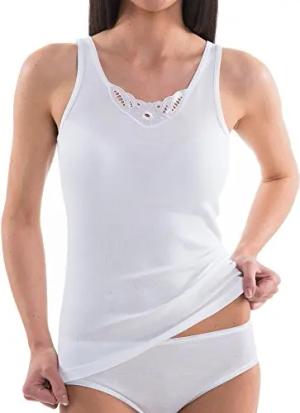 1440 Damen Unterhemd mit Spitze aus 100% Bio-Baumwolle, Farbe:weiß, Größe:36 (S)