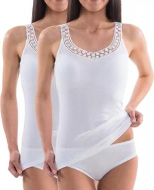 153310 Damen Hemd mit großer Spitze im 2er Pack aus 100% Bio-Baumwolle, Farbe:weiß, Größe:40/42 (M)
