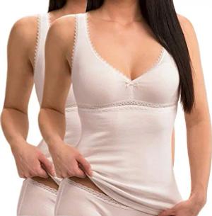 15804740 2er Pack Damen BH-Hemd aus 100% Bio-Baumwolle, Farbe:weiß, Größe:44/46 (L)