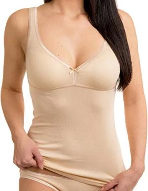 175803860 Damen BH-Hemd Unterhemd mit integriertem Bustier, Farbe:Cream, Größe:36/38 (S)