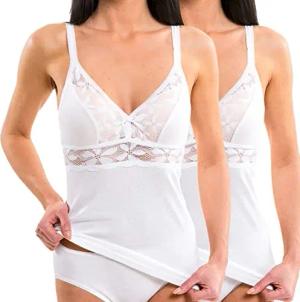2er Pack Damen BH-Hemd mit großer Spitze - Weiches Unterhemd mit V-Ausschnitt für Cup B + C aus Baumwolle/Modal 175803830, Farbe:weiß, Größe:32/34 (XS)