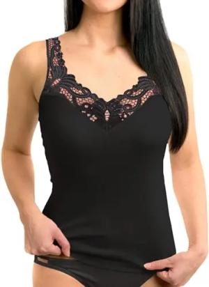 9153010 Damen Unterhemd mit Zauberhafter Spitze aus Bio-Baumwolle, Farbe:schwarz, Größe:44/46 (L)