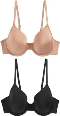 Damen 2er-Pack wattierte, glättende T-Shirt-BHS, Vollschale Schwarz/Praline Nude 90 F