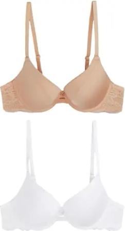 Damen 2er-Pack wattierte, glättende T-Shirt-BHS, Vollschale Praline Nude/White 75 E