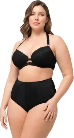 TruYou Damen große Größen Übergrößen Plus Size TruYou Bügel-BH, Softschalen, Spitze, High Cut, Cup B-F schwarz 105E 835692100-105E