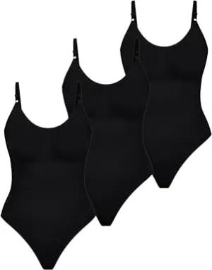 Bodysuit Damen 3er Pack Nysa, Bauchweg Shapewear, Formbody für Frauen, atmungsaktives Materialien mit Verstellbarer Trägern, Stringbody mit schönem Rückenausschnitt, Eleganter V-Ausschnitt