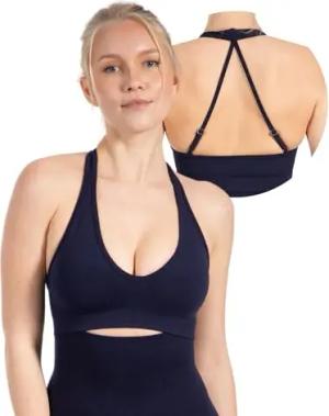 Sport BH Damen Azura, Nahtloses & Rückenfreies Crop Top, Neckholder Sport Bra mit Starken Halt und Kompressionsgefühl, Yoga Tank Top, Sportunterwäsche für Fitness, Gym, Alltag & Pilates