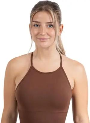 Sport BH Damen Amaze Pro - Blickdicht rutschfest Sport Bra - Seamless Gerippter Stoff Crop Top - Atmungsaktive Yoga Tank Top für Fitness & Gym, Größe:XS, Color:Braun