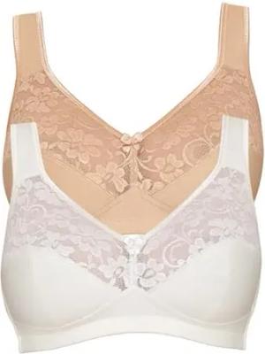 Baumwoll BH Damen 2er Pack - Basic 27931 - Größe B-E - Bügelloser BH mit Unterbrustband - 3-Geteilte Cups & verstellbare, gepolsterte Träger - Bequemer BH ohne Bügel mit Stützfunktion