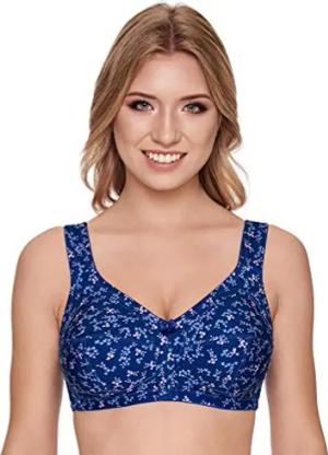 Damen BH ohne Bügel I Print 8235 I Größen B-G I Bügelloser BH mit 3-geteilten Cups & floralem Dessin I Verstellbare Träger & Rückenverschluss I Angenehmer Komfort-BH