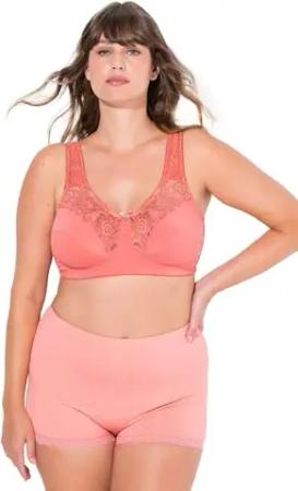 Damen große Größen Übergrößen Plus Size Entlastungs-BH, Spitze, ohne Bügel Koralle 105C 800619501-105C