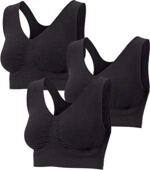 Patsy & Lou 3er Pack Sport-BHS, Bustier Damen, Optimaler Halt für Sport und Freizeit, Nahtlose Verarbeitung, atmungsaktive Sport Tops ohne Bügel, Schwarz, Gr. S
