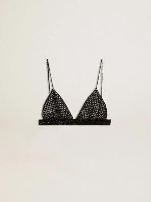 Schwarzes Damen-häkeltop Mit Kristallen, Frau, Größe: L