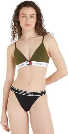 Bambus Damen Unterwäsche, Triangel BH, String Tanga aus Nachhaltiger Bambusfaser (L, BH - Olive)