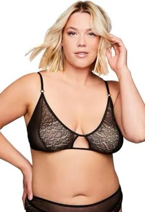 Damen große Größen Übergrößen Plus Size Bralette, Leo Spitze und Mesh schwarz 62+ 820116100-62+