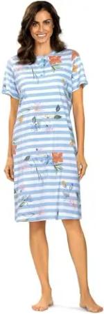 Damen Nachtemd 251229 Kurzarm Knopfleiste Bleu 100% Baumwolle Gr. 40 M